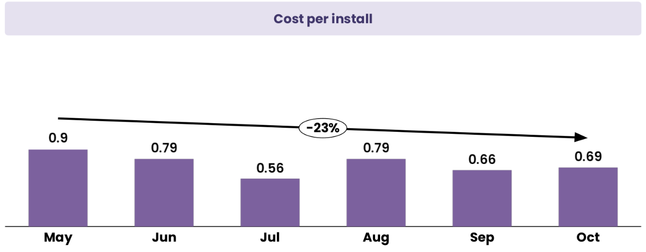 Our cost discipline is translating into increasingly efficient user acquisition. Over the past six months, our cost per install declined by 23 percent, moving from $0.90 in May to $0.69 in October, with a notable low of $0.56 in July. This trend reflects improvements in creative performance and stronger organic pull from word-of-mouth and content-driven awareness. While we expect monthly fluctuations as we test new audiences and scale campaigns, the overall trajectory confirms that our acquisition engine is becoming more efficient, more predictable, and better positioned to support larger volume growth in 2026.