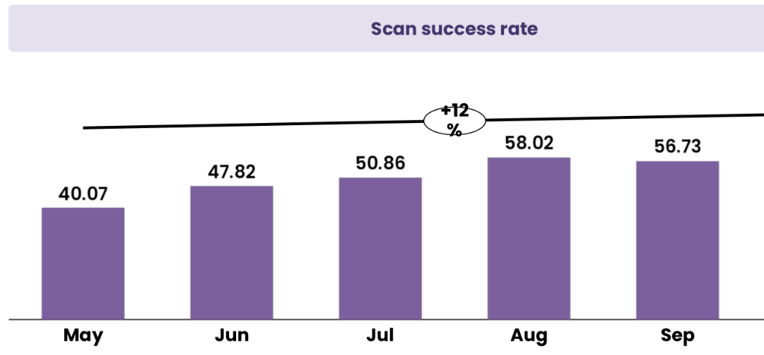 Our core product performance continues to strengthen, reflected in a consistent improvement in scan success rates. Over the last five months, successful scans increased from 40.07% in May to 56.73% in September, an overall gain of 12 percentage points. This progress is driven by ongoing model refinements, improved UX guidance, and device-level optimization. We are constantly enhancing this experience with a clear goal of reaching a 90% or higher success rate on the first scan. Notably, repeat-scan success rates are already in the 90% range, which reinforces a key insight: the technology works extremely well once users understand the flow. Our focus moving forward is to make the very first scan effortless and intuitive, unlocking higher engagement, stronger retention, and a more seamless consumer experience.