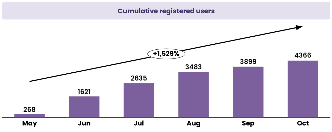 Our consumer app continues to demonstrate strong traction and clear product-market resonance. Over the past six months, our registered user base expanded from 268 to 4,366, representing a 1,529 percent increase. This growth reflects consistent month-over-month momentum driven by improved onboarding, stronger engagement loops, and expanding distribution channels. While we are still in the early stages of scaling, the velocity and durability of this growth give us confidence that our consumer engine is strengthening, our value proposition is resonating, and we are building toward a much larger user base in 2026.